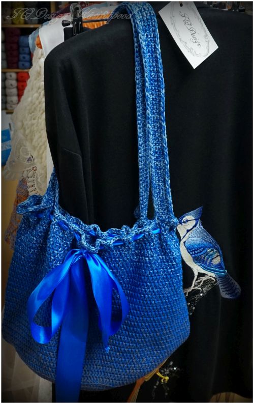 Mahukas pikkade sangadega kott, sinise-halli kirju