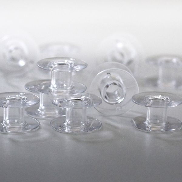 Läbipaistvad plastikust õmblusmasina poolid. Pakis 12tk